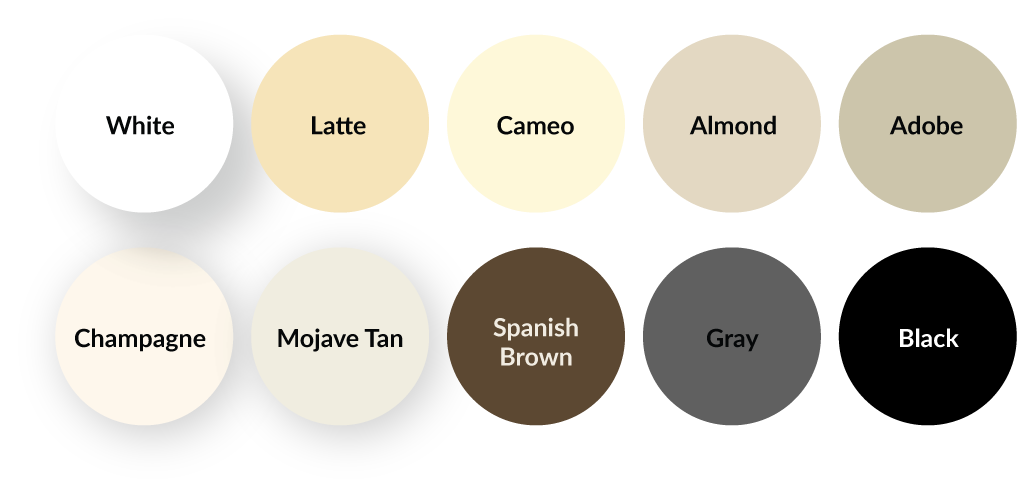 *Color options for roof pans and frames vary by build style. Please consult your DuraCool Authorized Contractor for available color combinations.